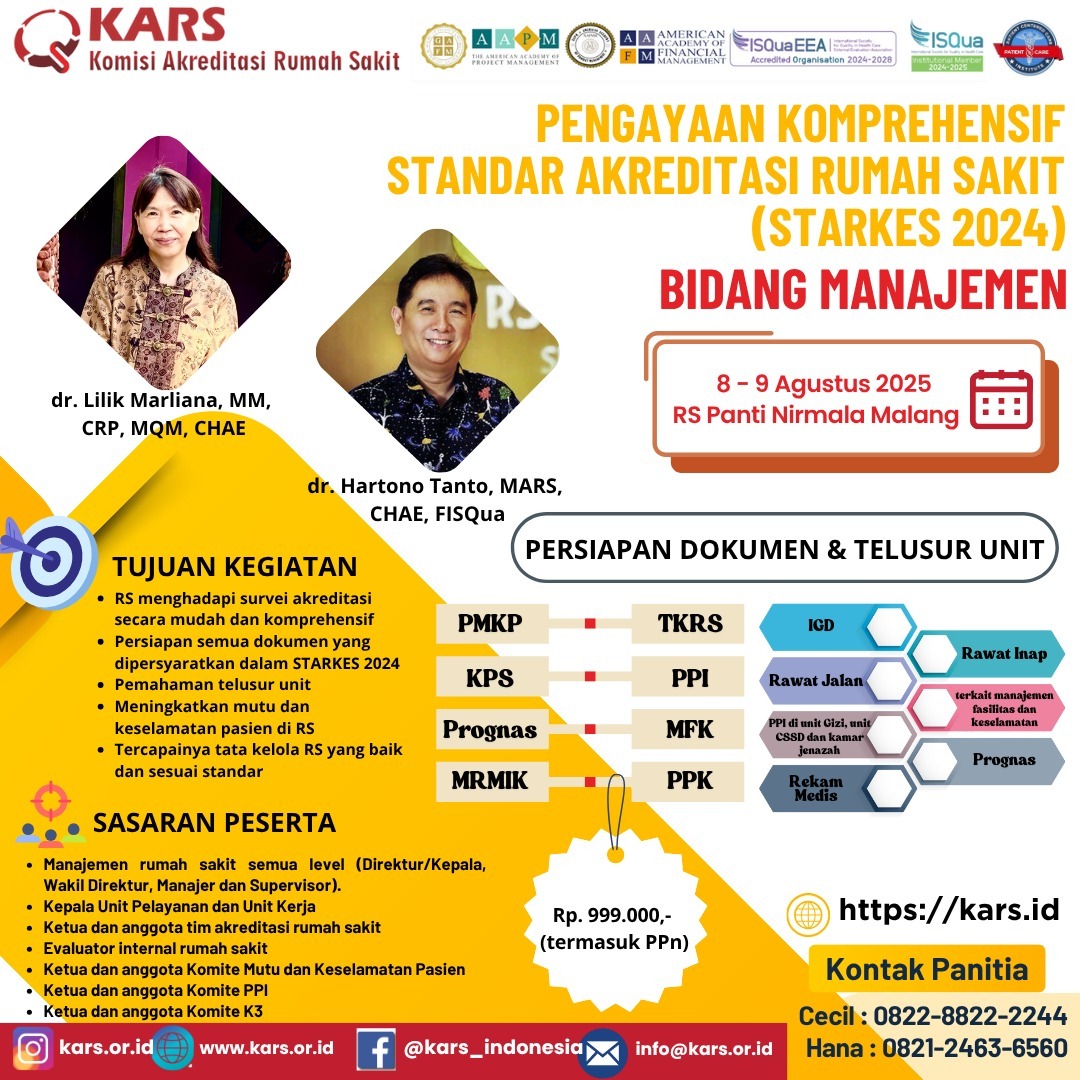 Pengayaan Komprehensif Standar Akreditasi Rumah Sakit (STARKES 2024) Bidang Manajemen di Malang - GA JADI