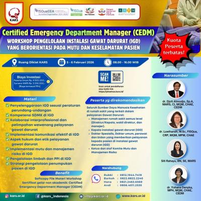 Workshop Pengelolaan Instalasi Gawat Darurat (IGD) yang Berorientasi Pada Mutu dan Keselamatan Pasien - Certified Emergency Department Manager (CEDM)